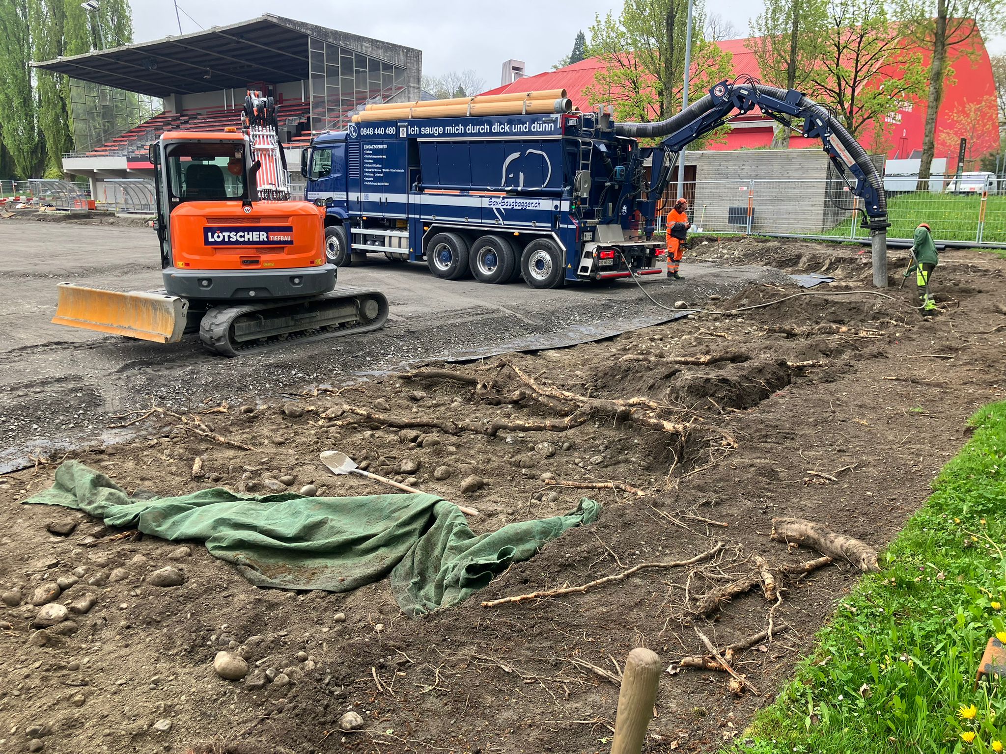 Wichtig: Die Baustelle ist kein Spielplatz und wird nicht betreten. Bitte befolgt die Vorgaben der Umbau-Verantwortlichen und der Trainer*innen.