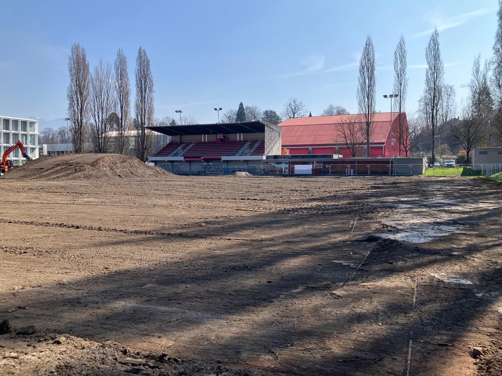 Wir erhalten einen Kusntrasen auf dem Hauptplatz auf Tribschen. Start der Bauphase ist am 9. März 2026 und die geplante Übergabe erfolgt Ende Juli 2026. Es dauert noch: